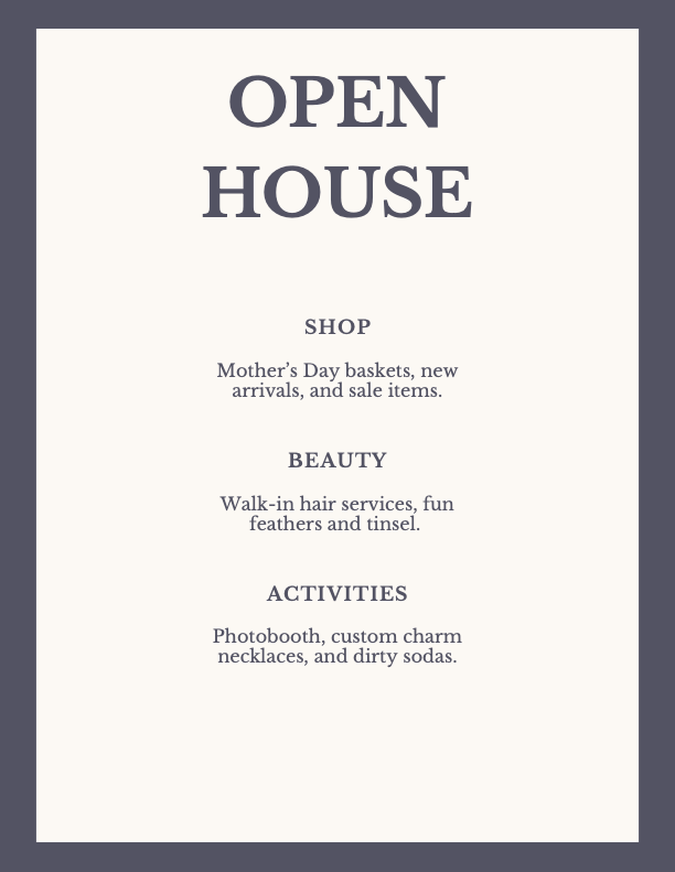 Join us this Saturday, April 18th for a thoughtfully curated open house featuring beauty services, shopping, and a first taste of our new signature drink menu.